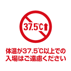 • 入場ゲートで体温測定は行いませんが、37.5度以上の発熱、もしくは、37.5度未満でも症状が見受けられる場合や、平熱よりも高いことが明らかな場合は入場をご遠慮いただきますので、予めご了承ください。