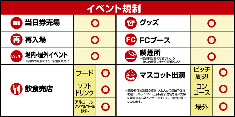 • 試合後、近隣店舗をご利用の際は節度ある行動にご協力よろしくお願いします。